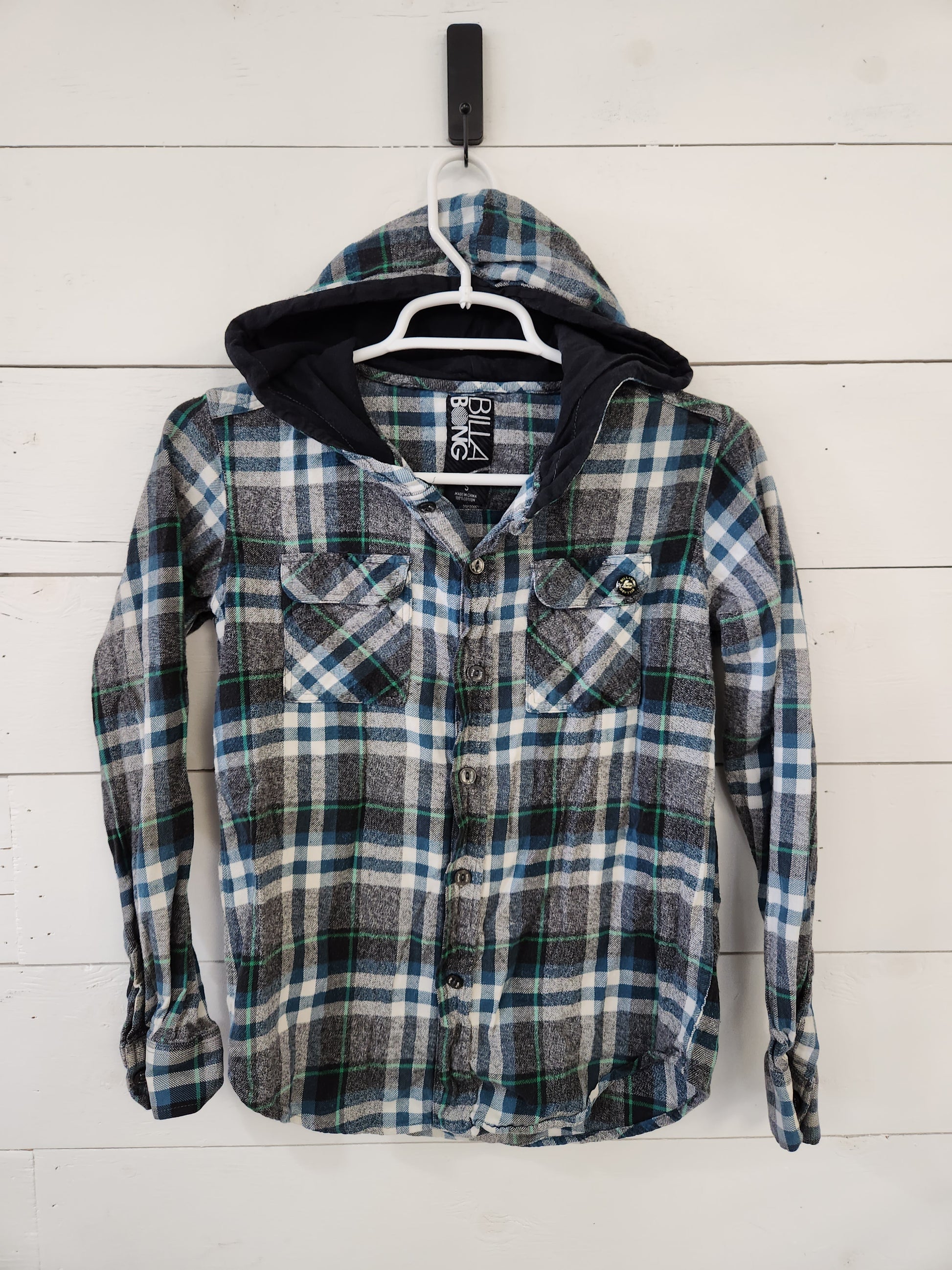 Size S | Billabong Plaid Hooded Long Sleeve