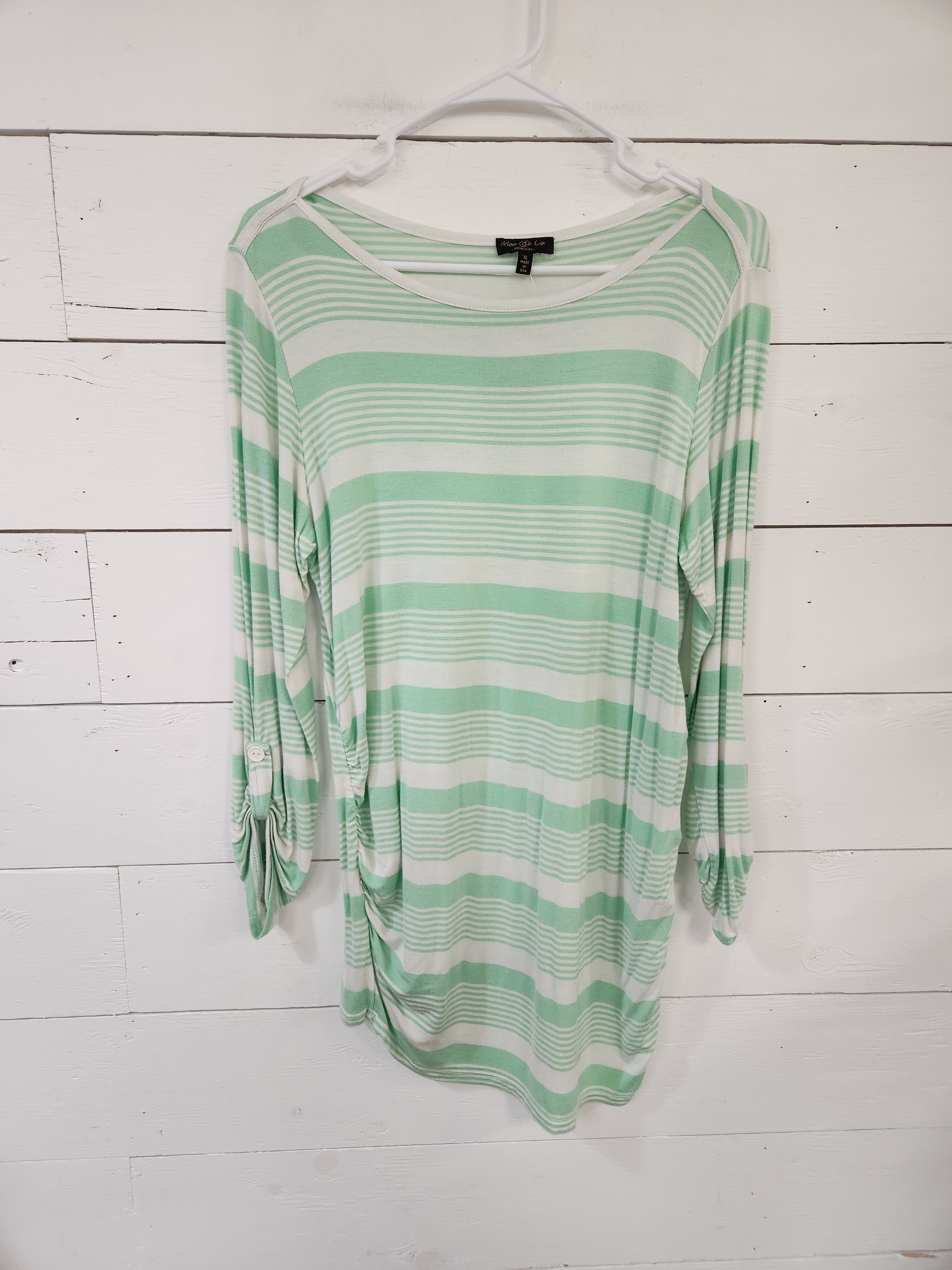 Size XL | Mom & Co Green & White Striped Maternity Shirt